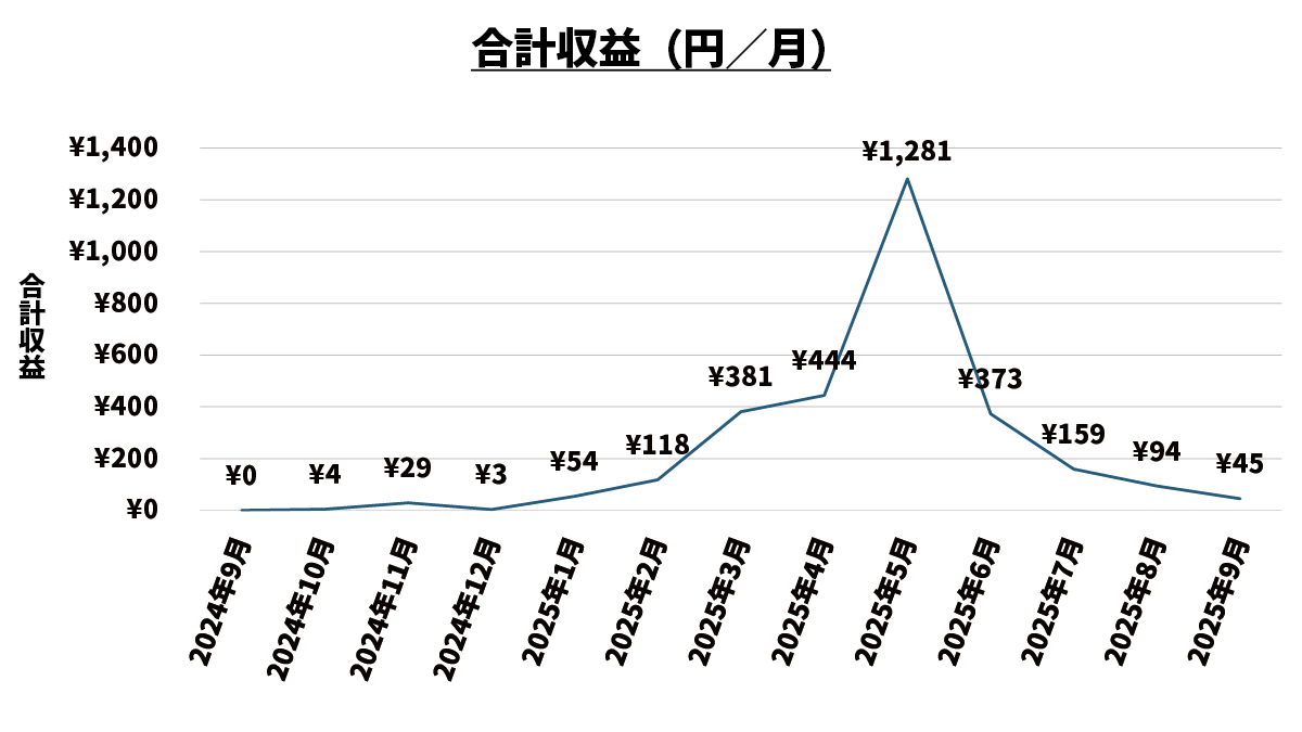 2024年9月〜2025年9月までの合計収益を月単位で見てみます。