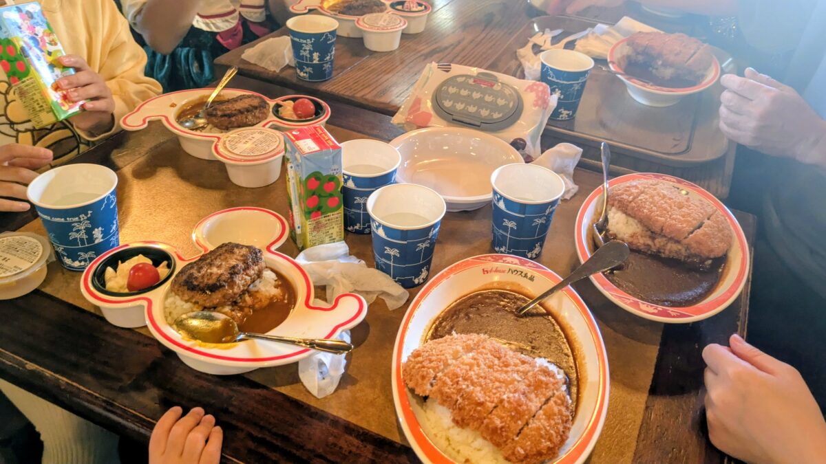 大人はポークカツカレー、子どもはお子様メニューのリトルハングリーベア・セットを頼みました。
