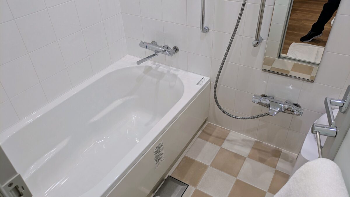 ホテルエミオン東京ベイ「エミオンスクエア」には天然温泉の大浴場があるので今回は大浴場に行きましたが、室内の浴室も広くて子連れに優しい部屋になっています。