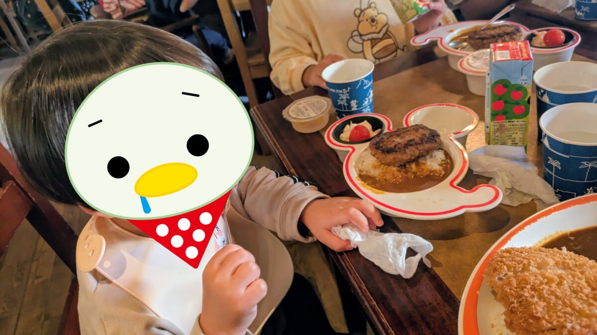 ランチは子どもが大好きなカレーと決めていたので、10:30頃の入園後すぐにハングリーベア・レストランへ。と思いきや…