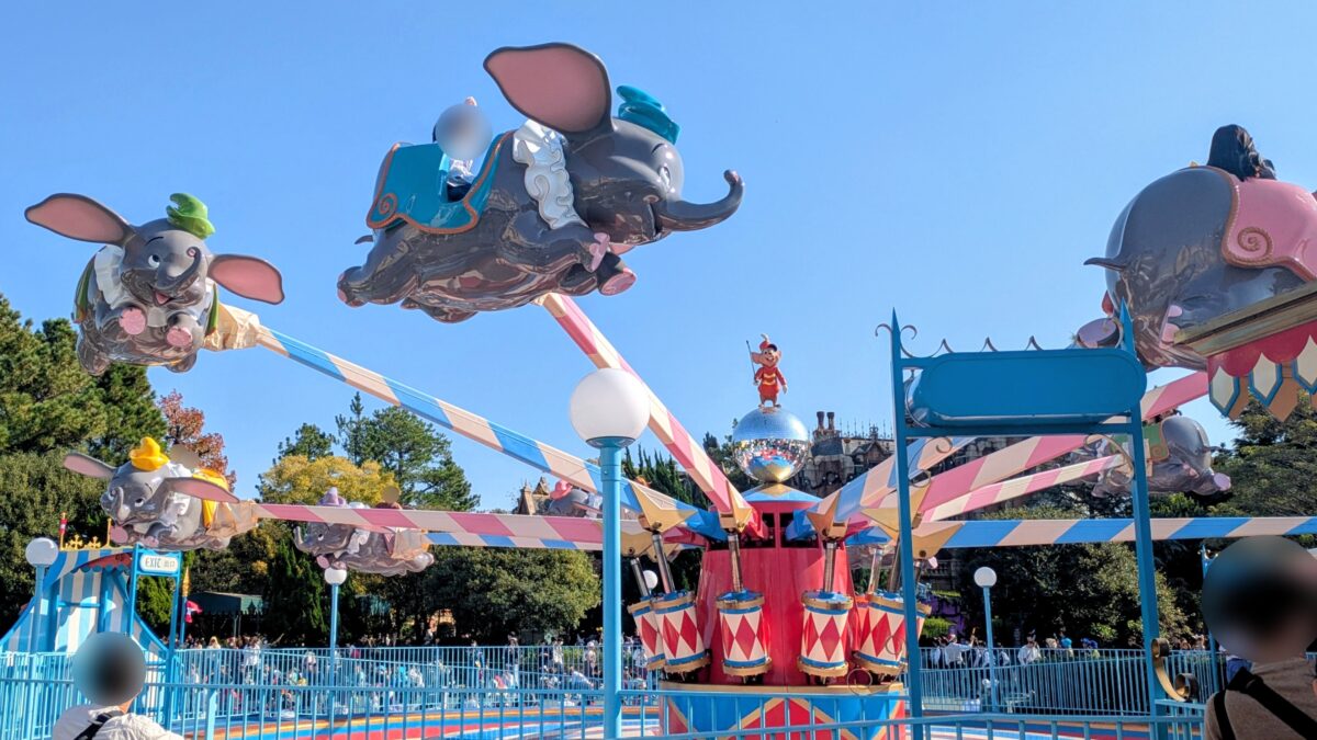 ピーターパン空の旅に乗り終わり、テンションが上がってきた姪っ子達。そのまま目の前にあった空飛ぶダンボにも当日要望で乗車しました。
