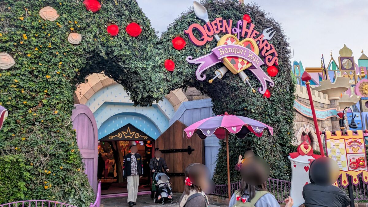 夜ご飯はホテルに戻ってから食べる予定でしたが、ランチを早めに食べたので夕方に小腹が空きました。ホーンテッドマンションを楽しんだ後、隣にあったのはクイーン・オブ・ハートのバンケットホール。