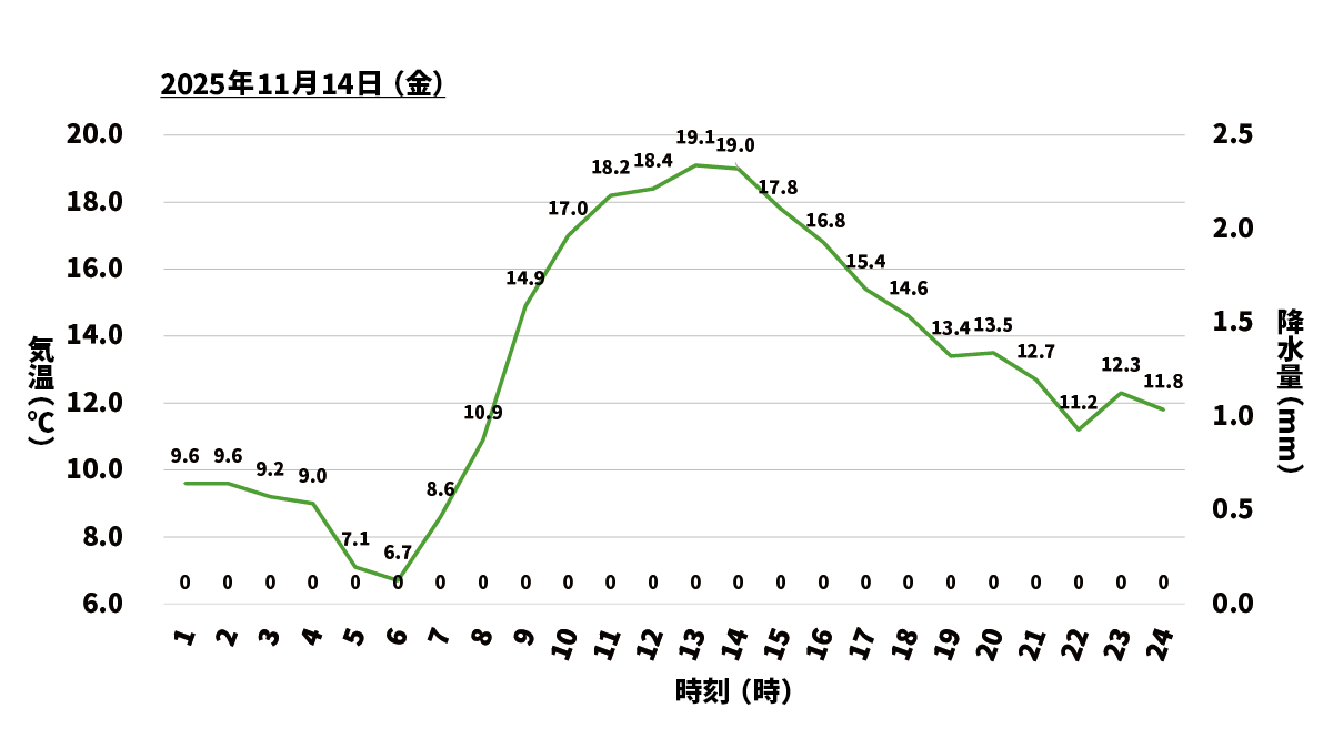 冬が近づく11月中旬にも関わらず日中は暖かく上着は不要でしたが、日が落ちた夕方(17時頃)以降は肌寒かったので上着が必要でした。