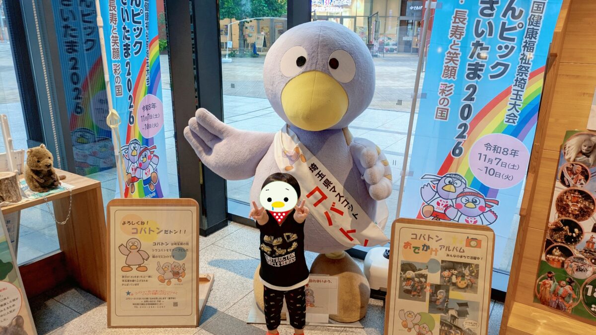 DFSが終了し、会場を出ようとしたところに埼玉県のマスコットキャラクター「コバトン」がいたので記念にパチリ。