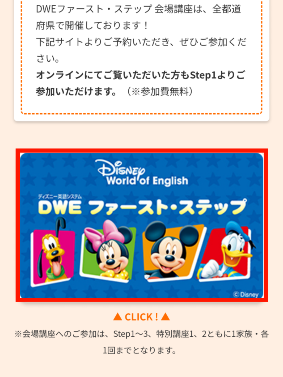 DWEファースト・ステップ(DFS)とは、DWE正規購入者を対象とした、ディズニー英語(DWE)の教材を親子で使いこなせるよう教材の使い方や学習の進め方を教えてくれるアフターサポートサービスです。