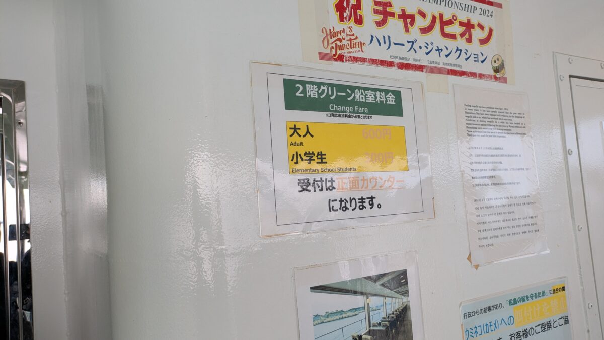 定員になり次第販売終了となるので、乗船したら真っすぐ前に進みましょう(現金支払なので事前に用意しておくとスムーズです)。