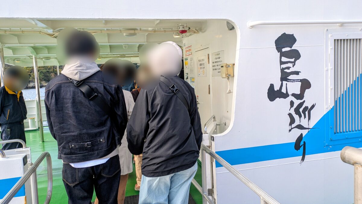 乗船10分前頃(10:50頃)に仁王丸が到着しました。前の便の乗客が下船したらいよいよ乗船です。観光船の後方から乗船します。