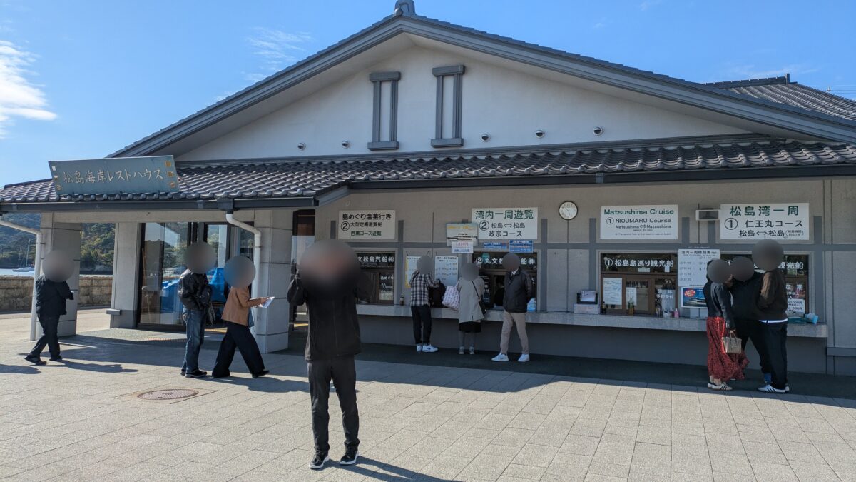 松島海岸駅から仁王丸の乗り場までは6〜7分ですが、その前に乗船券販売所で乗船券を購入する必要があります(ネット予約している場合でも一度乗船券販売所にて乗船手続きを済ませます。)。