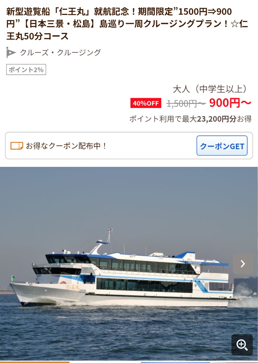 松島の観光スポットを調べたところ、観光船に乗船できるとの情報が!
