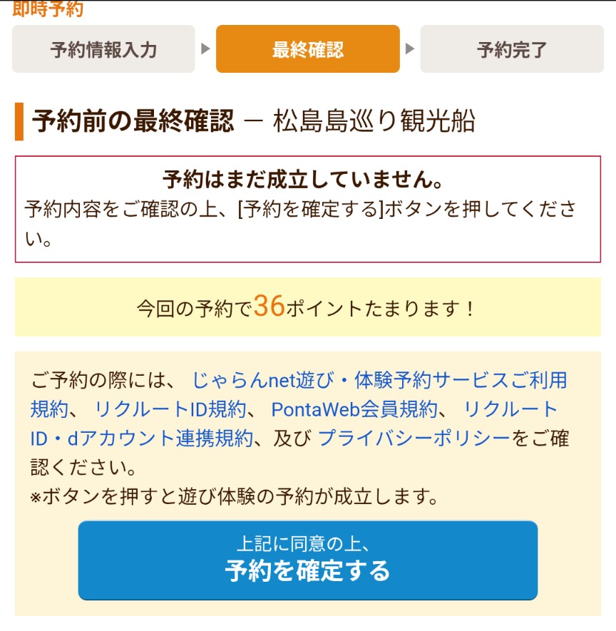 4ヶ所いずれかの乗船券販売所で乗船券を購入しますが、予約することもできます。予約は公式HPの他、じゃらんなどからも予約できます。