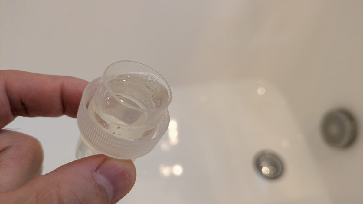 でも湯船に何リットル溜まったか分からないから、僕は湯船の底から3cmくらいを目安に水を張ってるよ!
